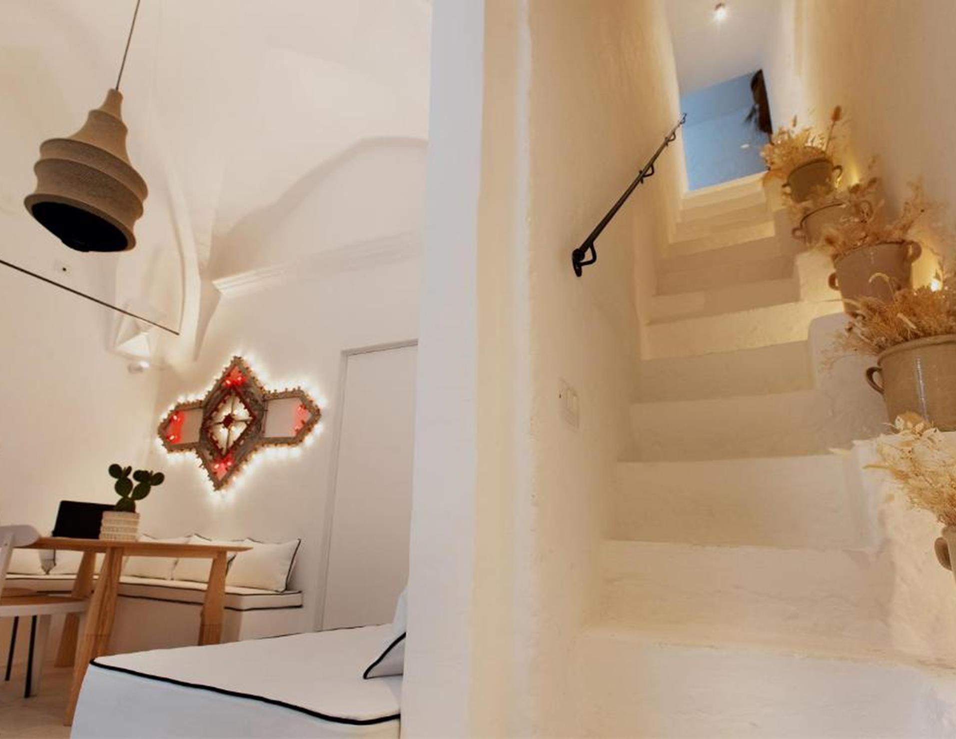 Descrizione: antica dimora salentina, completamente ristrutturata, custode di elementi della tradizione come volte a stella, pietra leccese affiancati a oggetti dal design contemporaneo. Si compone di un corpo disposto su tre livelli, incastonato tra edifici antichi che circondano una corte interna.