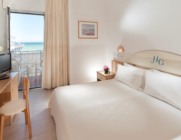Camere: 50, Standard tutte con balcone, arredate con toni chiari e luminosi. Dotazioni: servizi con doccia e phon, telefono, Wi-Fi, TV-Sat, mini frigo, cassaforte, aria condizionata.