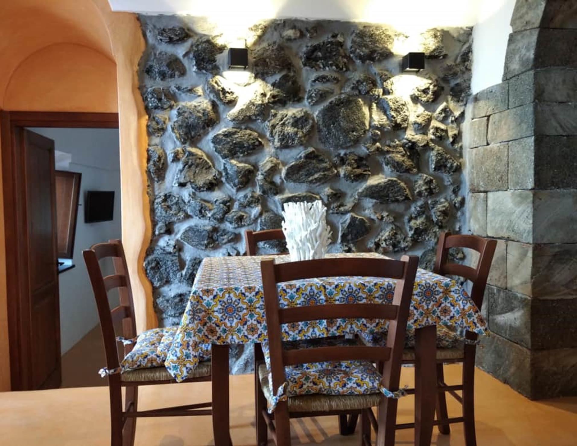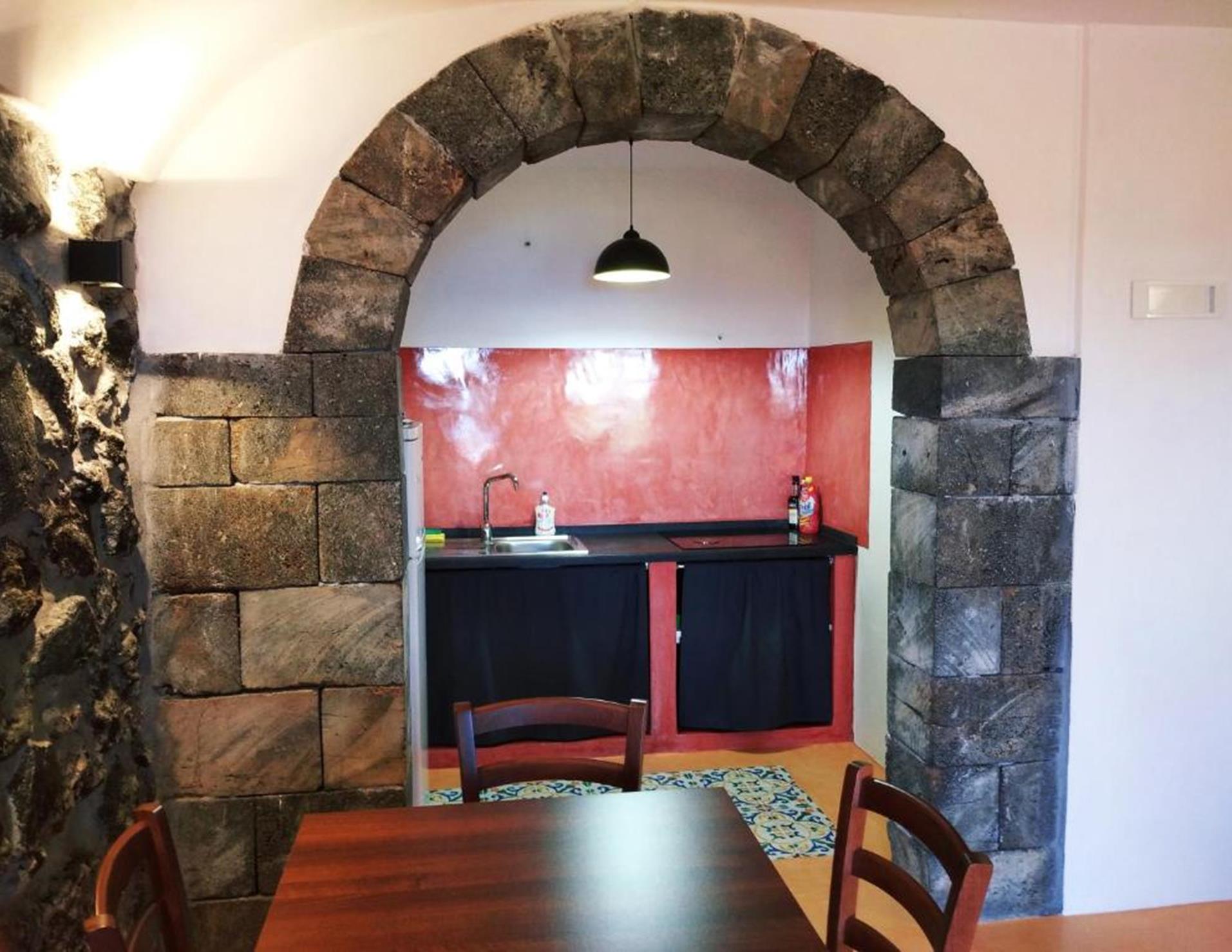 Dammuso U Macaseno 4: nato dalla ristrutturazione di un antico magazzino utilizzato per la conservazione dei prodotti agricoli e del vino dell'azienda agricola. Composto da soggiorno con ampia vetrata vista mare e divano letto doppio, disimpegno, camera matrimoniale. Terrazzo attrezzato vista mare coperto da cannizzo.