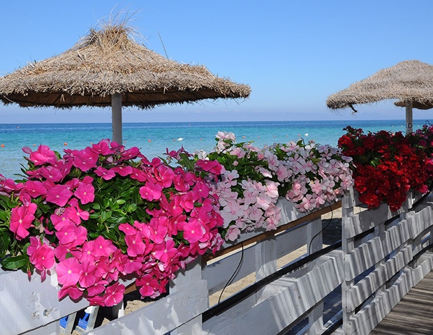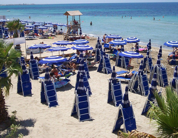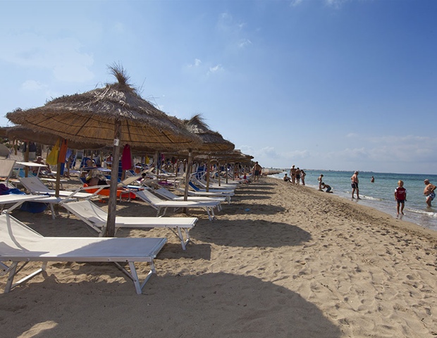 Spiaggia: di sabbia fine e bianca, a pagamento e fino a esaurimento posti, (ubicazione dell’ombrellone casuale e non prenotabile), caratterizzata da un fondale dolcemente digradante, raggiungibile a piedi o tramite servizio navetta (vedi tessera club) a orari prestabiliti e a posti limitati. Bar, docce e bagni. Pedalò, canoa o SUP (Stand Up Paddle), a pagamento.
