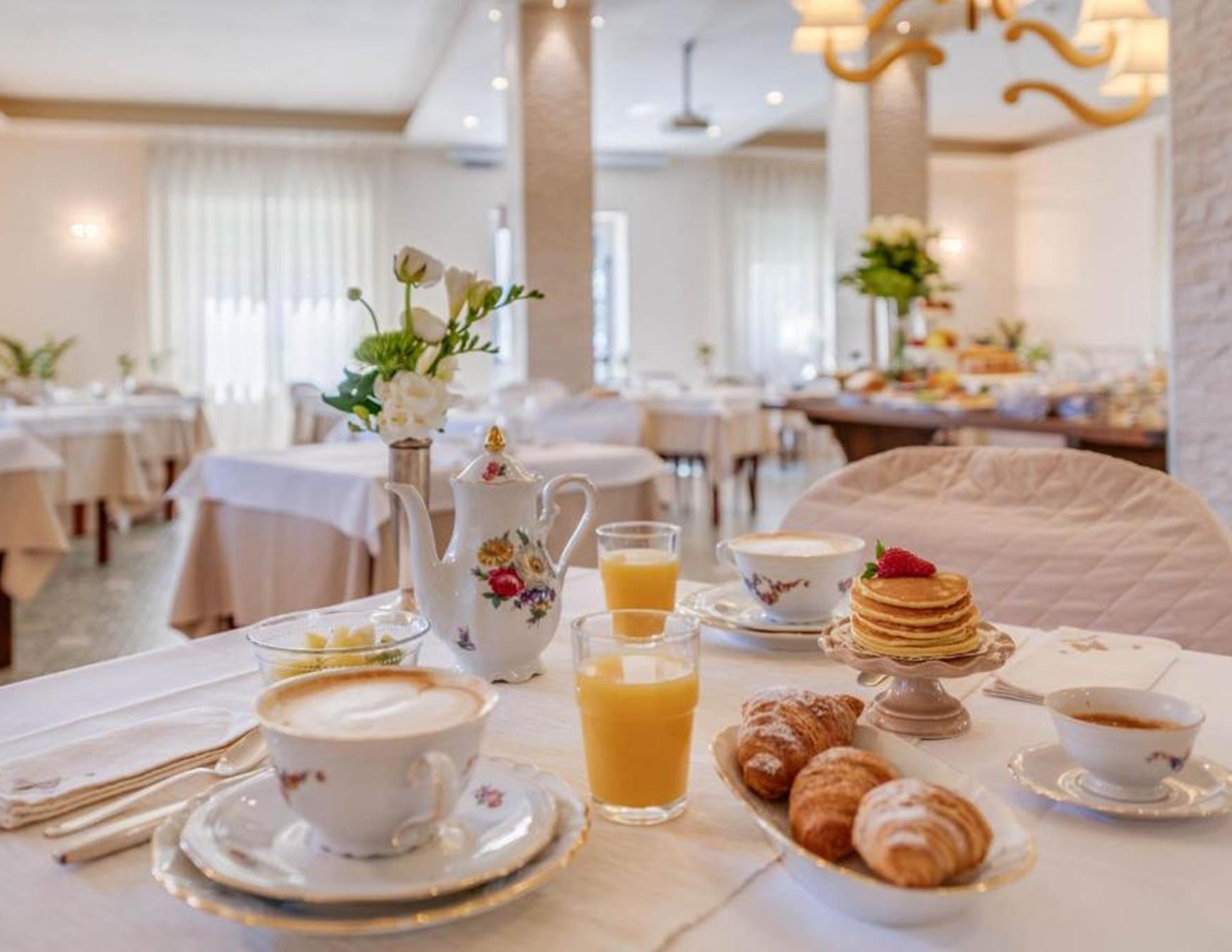 Presso l’albergo potrete usufruire ogni mattina di una colazione con cibi dolci e salati.