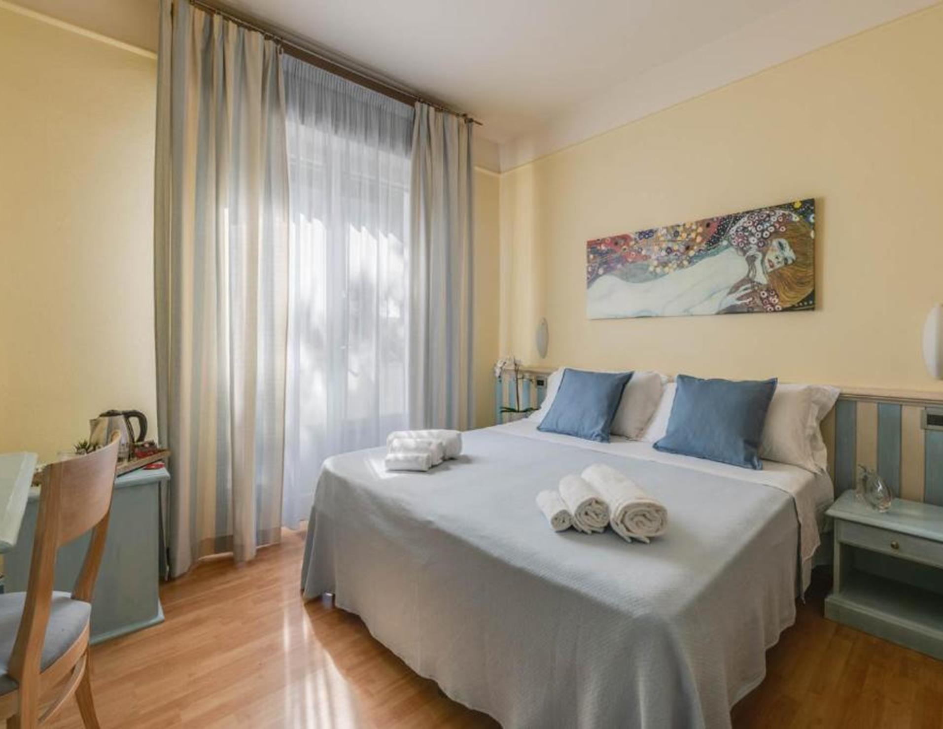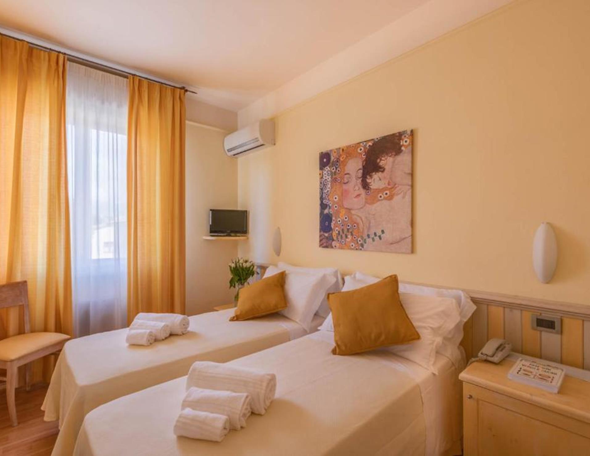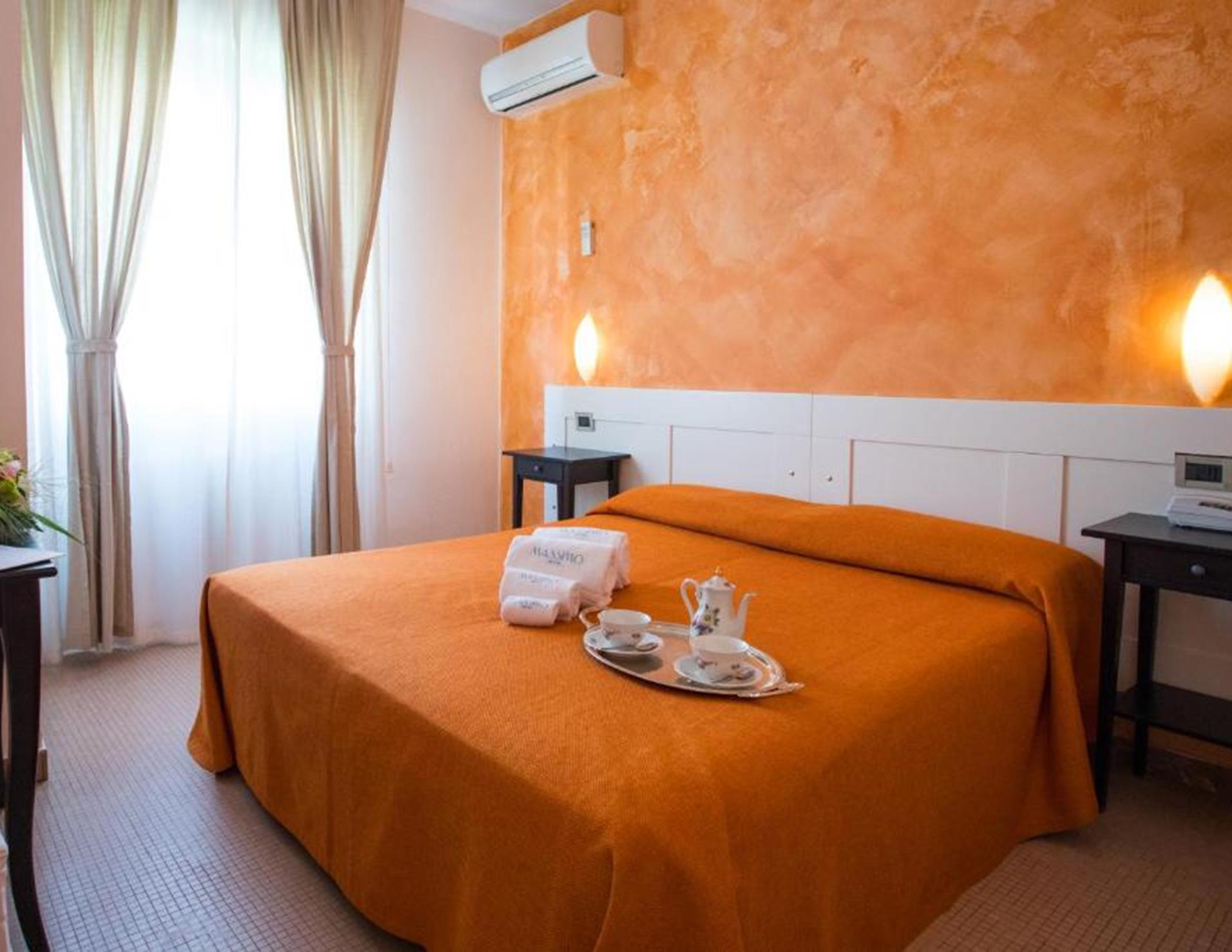 Le sistemazioni dell'Hotel Massimo sono dotate di mobili in legno chiaro e pavimenti in piastrelle. Il bagno privato è completo di asciugacapelli e set di cortesia.