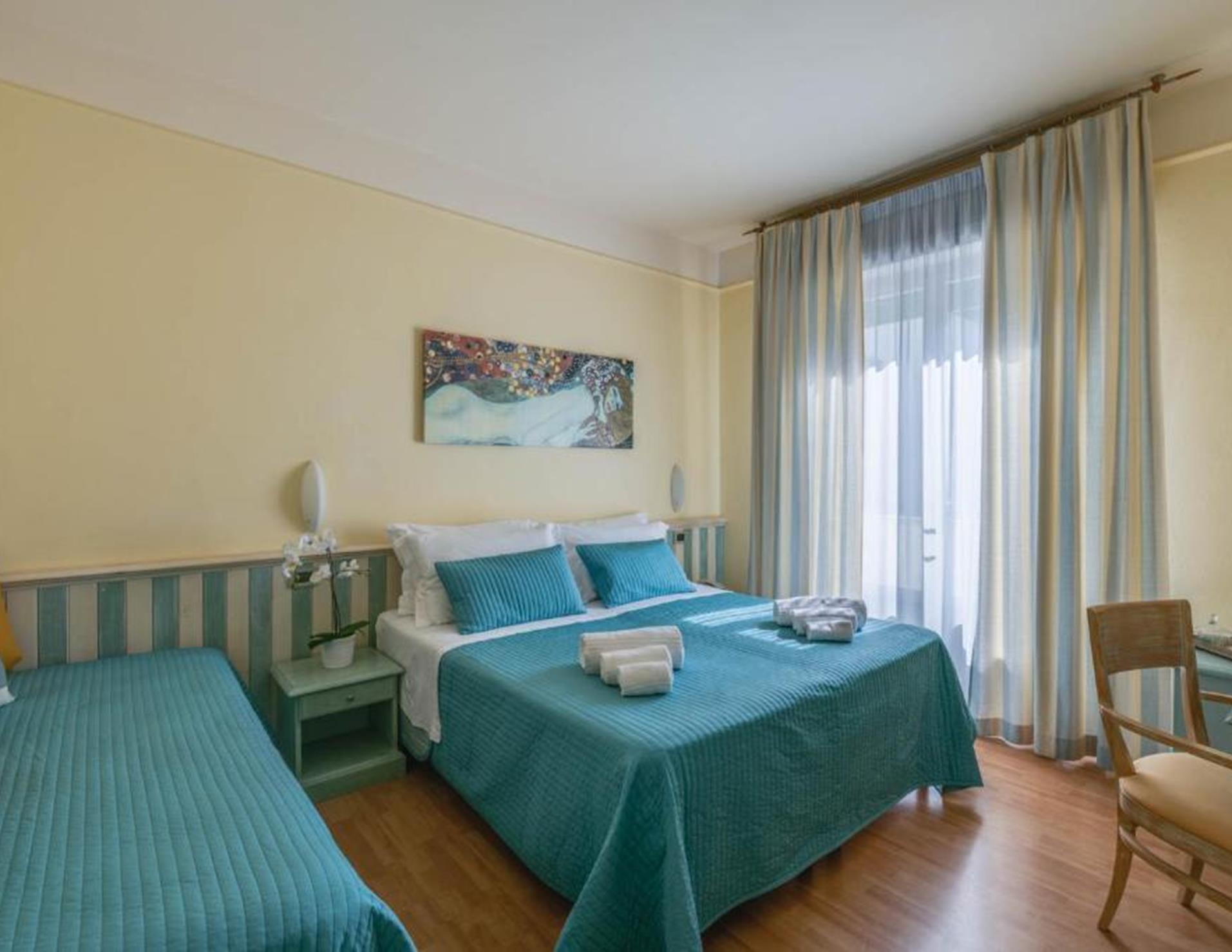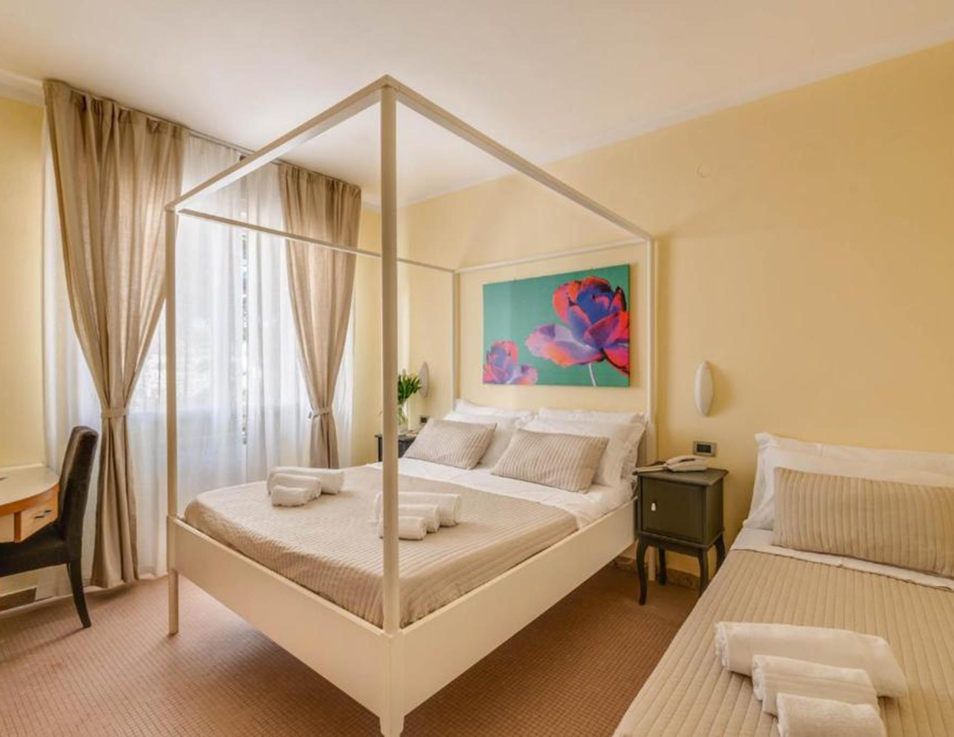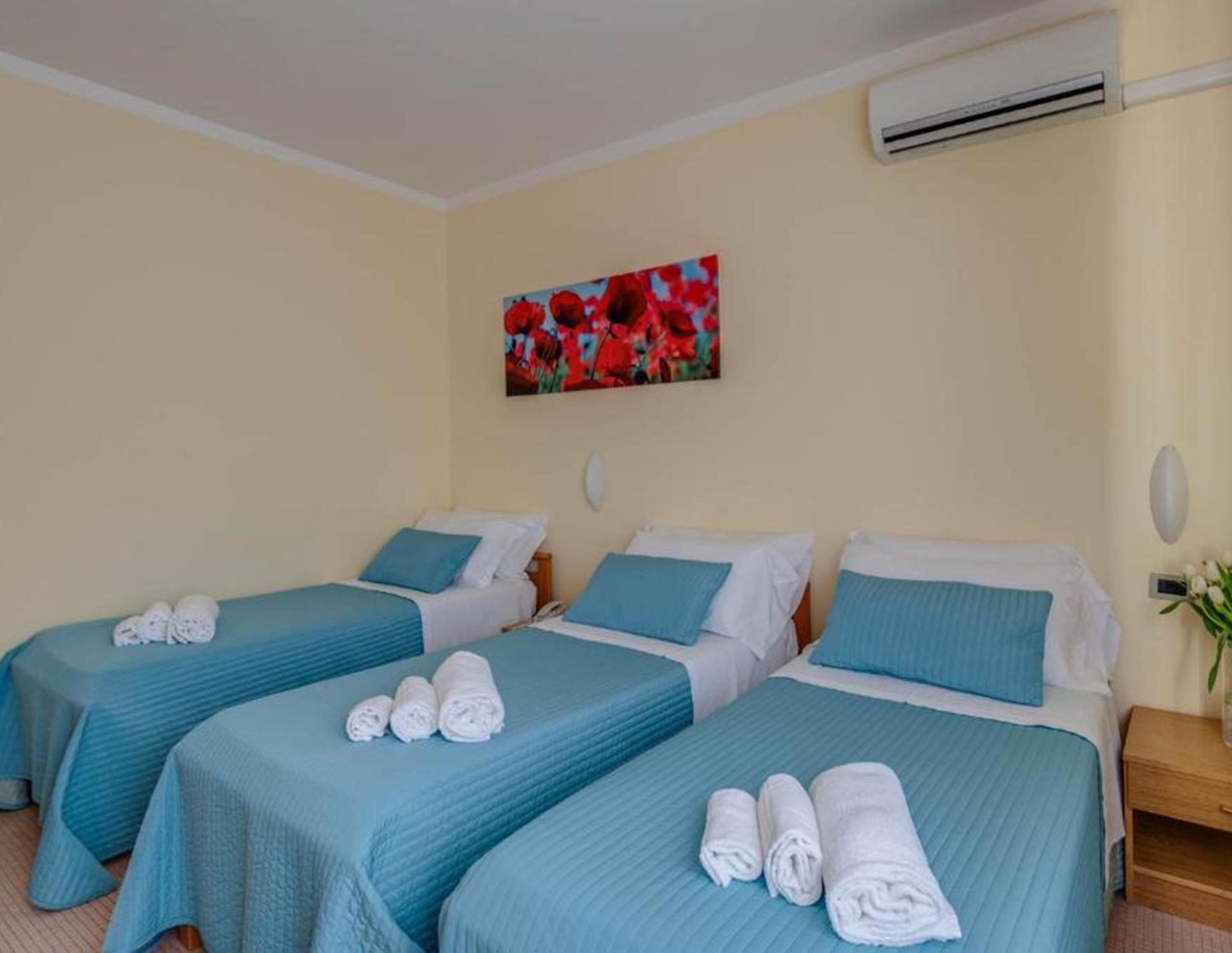 Le sistemazioni dell'Hotel Massimo sono dotate di mobili in legno chiaro e pavimenti in piastrelle. Il bagno privato è completo di asciugacapelli e set di cortesia.
